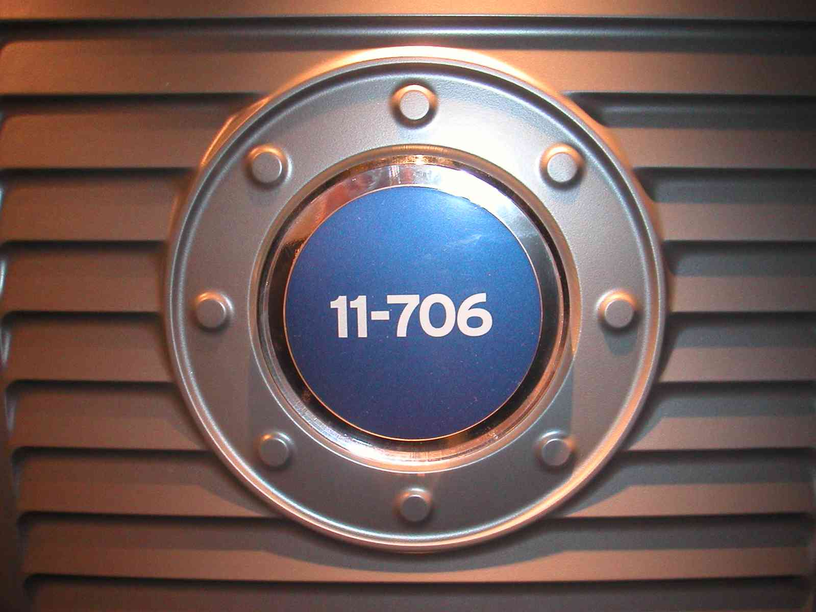 Türschild der Kabine 11-706. Die Zahl vor dem Bindestrich zeigt das Deck an. Diese Kabine befindet sich also auf Deck 11. Die Kabine befindet sich auf der Steuerbordseite (Port Side) und liegt im hinteren Drittel des Schiffes.