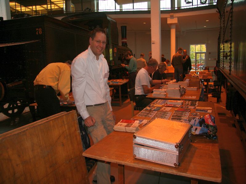 Der Fahrplantauschtag fand nicht in einem gesonderten Seminarraum statt, sondern direkt in den Ausstellungsräumen des Museums. Dazu hatte uns die Museumsleitung stilecht einen Platz zwischen zwei deutschen Dampfloks im Ringlokschuppen reserviert. Das Foto links zeigt diesen Bereich von der Empore des Lokschuppens aus gesehen.