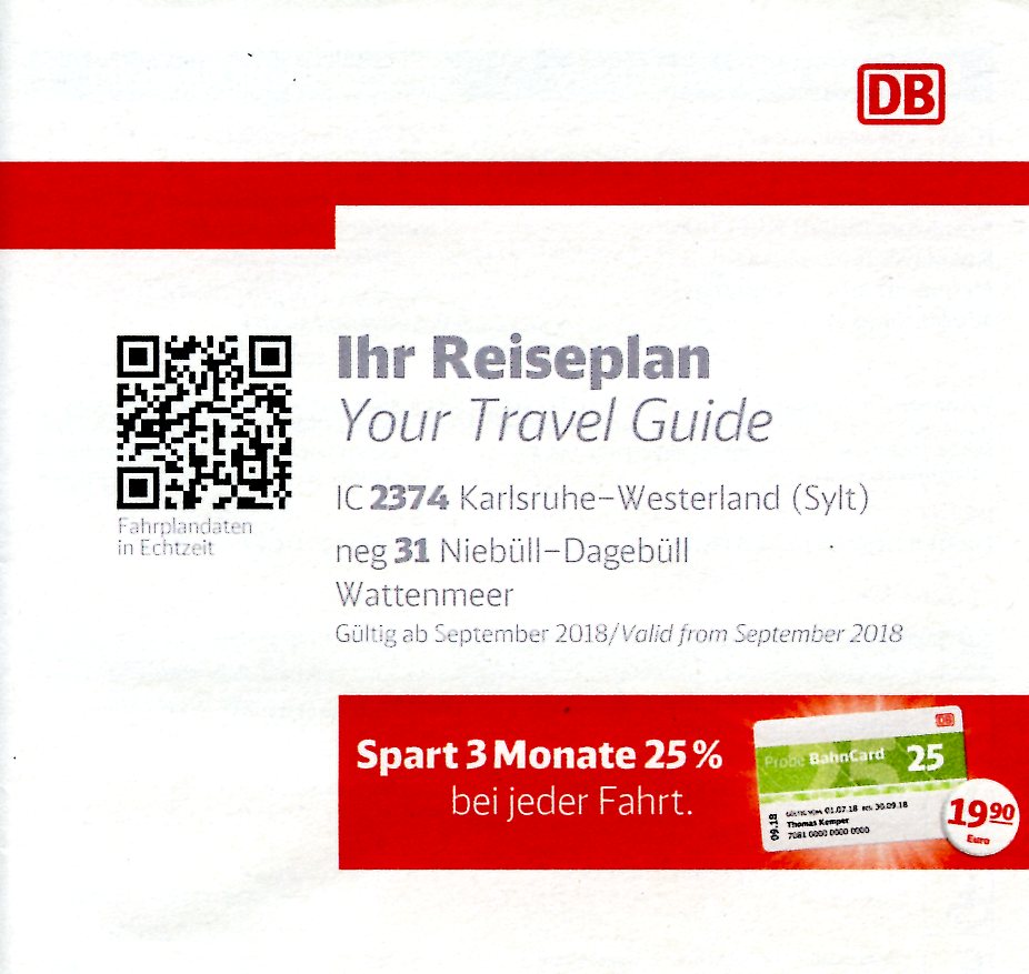 Auch wenn auf dem Titelblatt des Reisplans nicht darauf hingewiesen wird, ist der IC 2195 ein Sprinterzug von Hamburg nach Köln ohne Halt zwischen Hamburg und Essen. Die April-Ausgabe des Reiseplans (rechts) ist korrekt erstellt worden. Im Januar 2018 hat der Fehlerteufel aber schonungslos zugeschlagen: Nicht nur, daß auf dem Titelblatt Start- und Endbahnhof vertauscht wurden, sogar der gesamte Laufweg wurde auf den Folgeseiten in umgedrehter Reihenfolge abgedruckt und Hamburg erreicht man 3,5 Stunden vor der Abfahrt in Köln. Ein Zug mit echten Sprinterqualitäten...