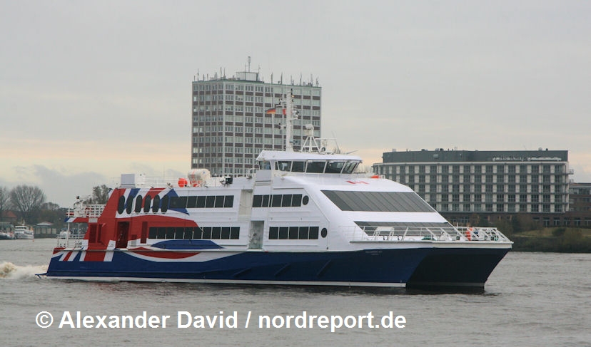 Seit 1999 war der Katamaran "Renøy" für die norwegische Finnmark Fylkesrederi og Ruteselskap (FFR) überwiegend von Hammerfest und Tromsø im Fährverkehr Nord-Norwegens unterwegs. Im Jahr 2003 wurde die FFR an die Firma CONNEX Norge verkauft, die ihrerseits später unter VEOLIA Transport Nord und dann schließlich unter BOREAL Norge firmierte. Der FFR gehörte früher auch der Katamaran "Vargøy", der im Helgoland-Verkehr kein Unbekannter war. Aufgrund des optisch auffälligen und attraktiven Designs in Form des abgeknickten roten Seitenstreifens können die beiden Katamarane ihre gemeinsame Vergangenheit nicht verbergen. Anders als die "Vargøy", die schon 2004 dem hohen Norden den Rücken kehrte, verblieb die "Renøy" bis jetzt in Norwegen. Am 7. Dezember 2017 übergab BOREAL das Schiff dann aber an German Fast Ferry GmbH, einer Tochtergesellschaft der Adler-Schiffe GmbH & Co. KG, die den Katamaran künftig unter deutscher Flagge in nordfriesischen Gefilden einsetzen wird.