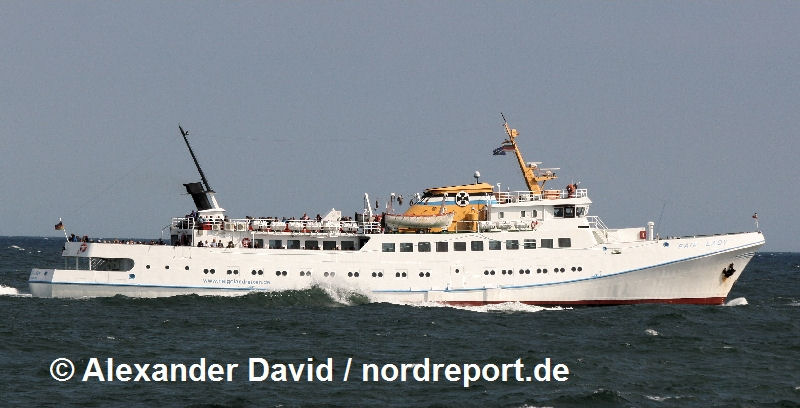 Um 14:00 Uhr traf die "Funny Girl" von Büsum kommend ohne Passagiere auf der Helgoländer Reede ein, um wenigstens noch die Rückfahrt planmäßig durchzuführen und den Übernachtungsgästen die gebuchte Rückfahrt zu ermöglichen.
