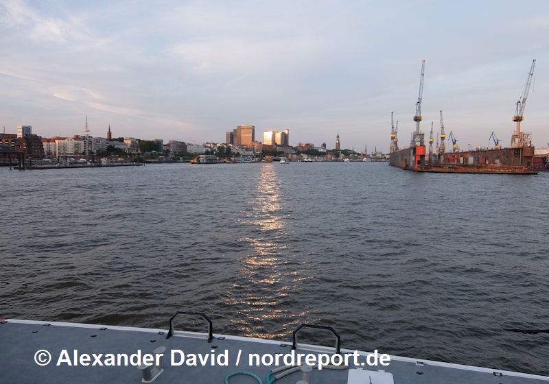 Am Morgen des 30. Dezember waren die Wellen in der Deutschen Bucht immer noch jenseits der zwei Meter. Da man noch die jüngsten Wetterberichte abgewartet hatte, wurde der "Halunder Jet" an diesem Tag erst um 9:00 Uhr in Hamburg bereit gestellt (Foto oben). Die Abfahrt erfolgte dann um 9:20 Uhr. Die Rückfahrt fand planmäßig statt.